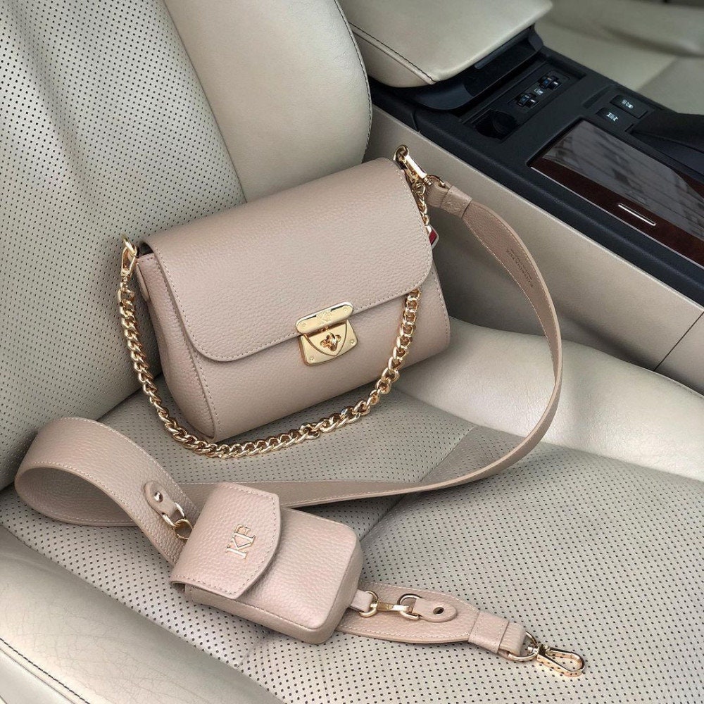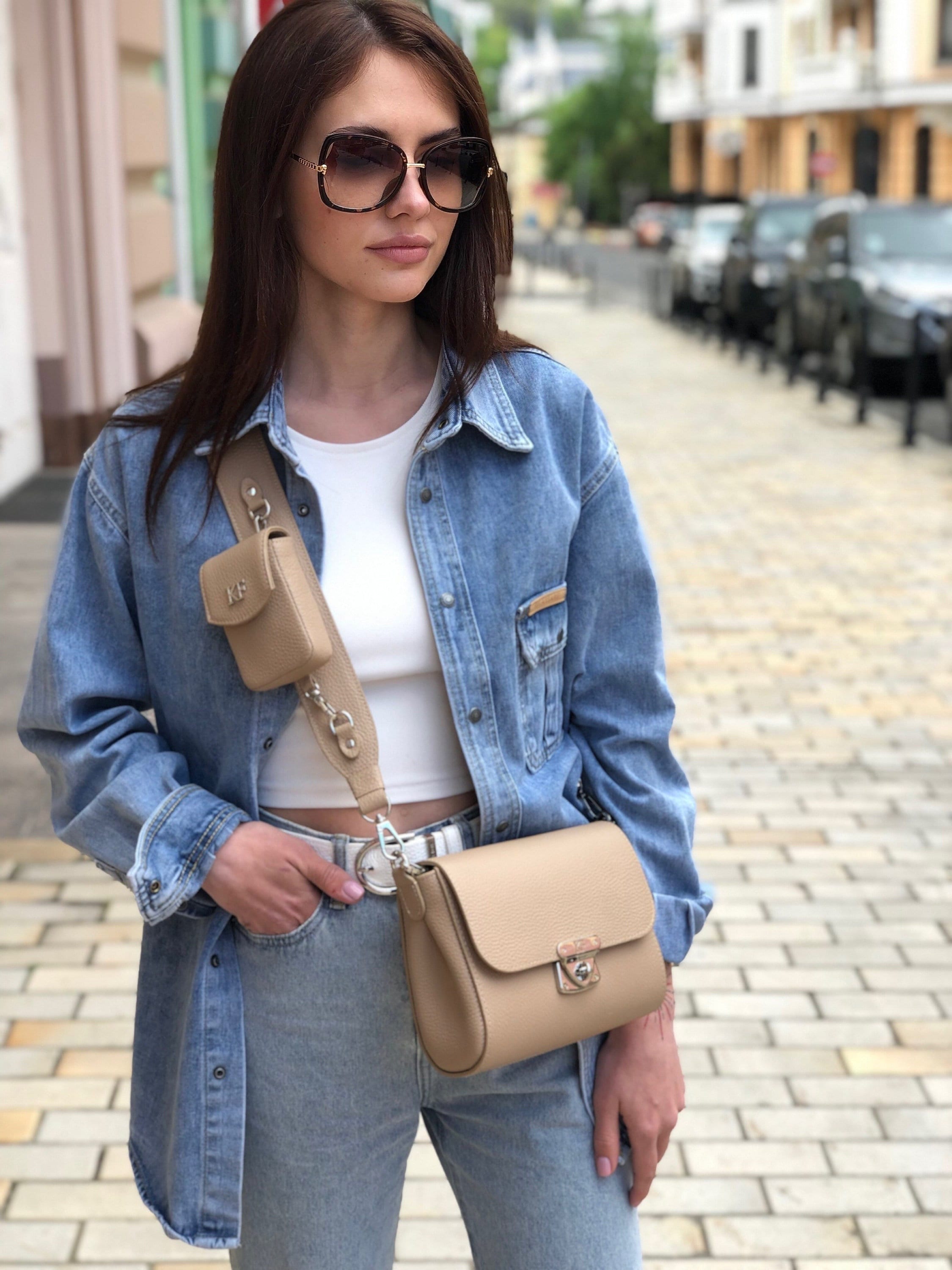 Beige genuine leather woman shoulder bag from ukrainian designer Katerina Fox. Women's laconic bag of leather will be necessary a stylish addition to many relevant images. Inside the bag one large compartment, one patch pocket and one zipper pocket, bag closes with a zipper. The handle length is adjustable.