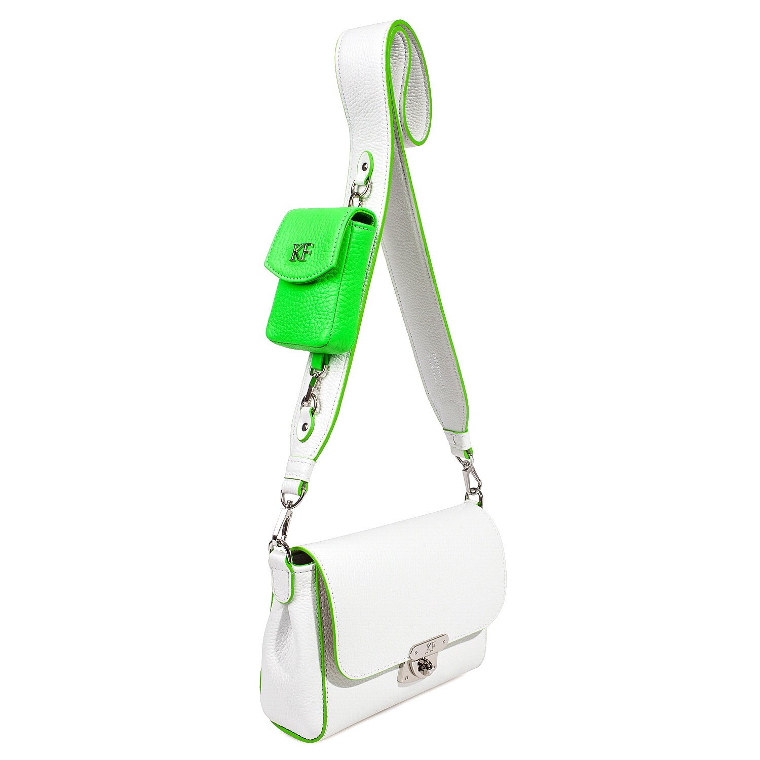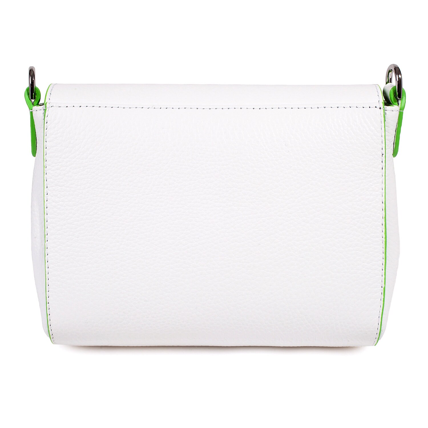 White genuine leather woman shoulder bag from ukrainian designer Katerina Fox. Fashionable and elegant modern bag KF for bright girls and women. This bag is able to attract attention and highlight your exquisite taste. Inside the bag is one large compartment and a convenient zippered pocket for small items, closes the bag on the clasp. The bag is comfortable to wear on the shoulder or across the shoulder.