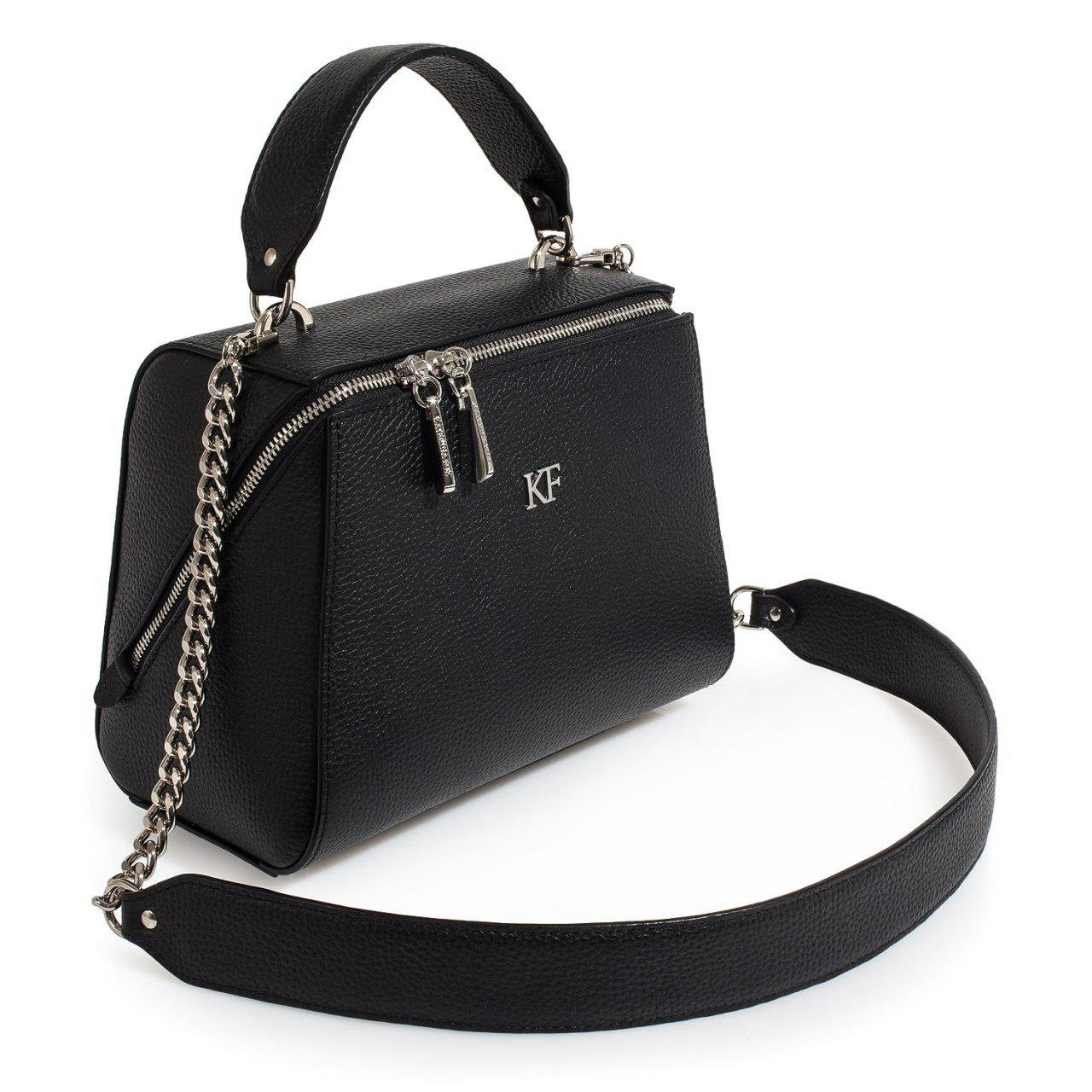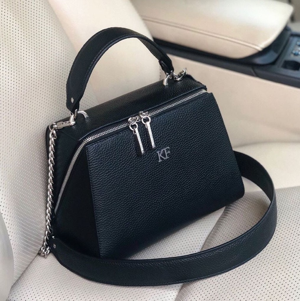 Black genuine leather handbag from ukrainian designer Katerina Fox. This model is designed for women who appreciate the sleek design combined with functionality and comfort. High-quality and reliable hardware ensure long service bags. The internal space of a bag is equipped with one spacious compartment and two patch-pockets and one zipper pocket. The bag is closed with a zipper. The bottom of the bag is protected with metal legs. There is a long handle that allows you to wear the bag on the shoulder. The kit also includes a storage bag.