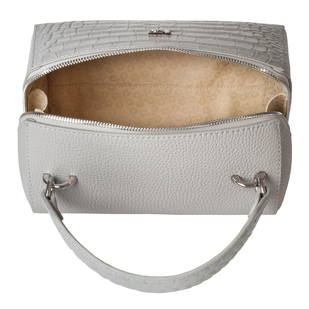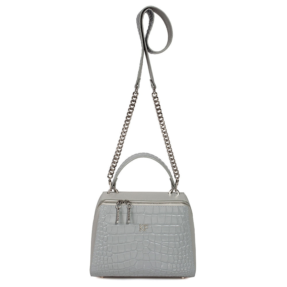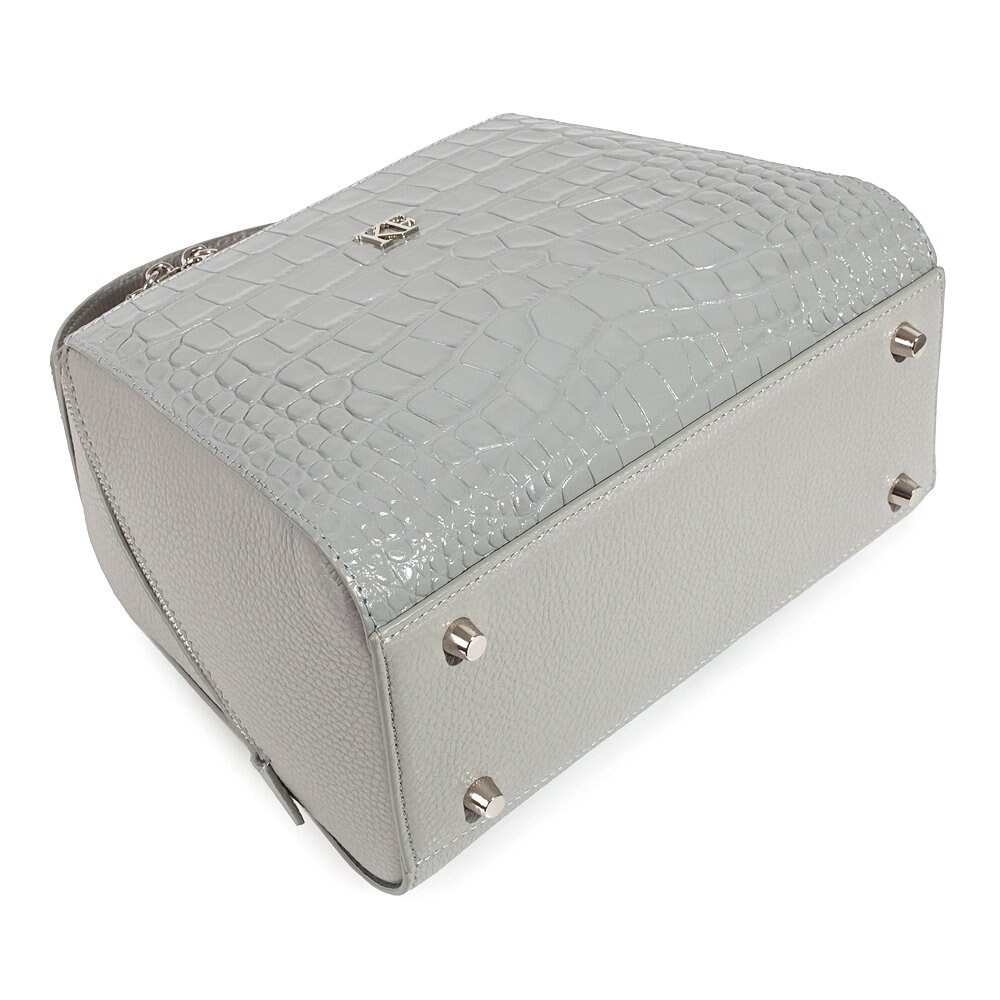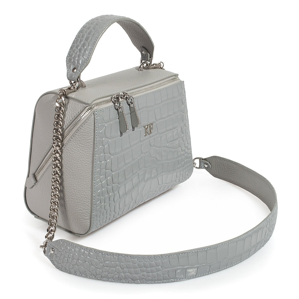 Gray genuine leather handbag from ukrainian designer Katerina Fox. This model is designed for women who appreciate the sleek design combined with functionality and comfort. High-quality and reliable hardware ensure long service bags. The internal space of a bag is equipped with one spacious compartment and two patch-pockets and one zipper pocket. The bag is closed with a zipper. The bottom of the bag is protected with metal legs. There is a long handle that allows you to wear the bag on the shoulder. The kit also includes a storage bag.