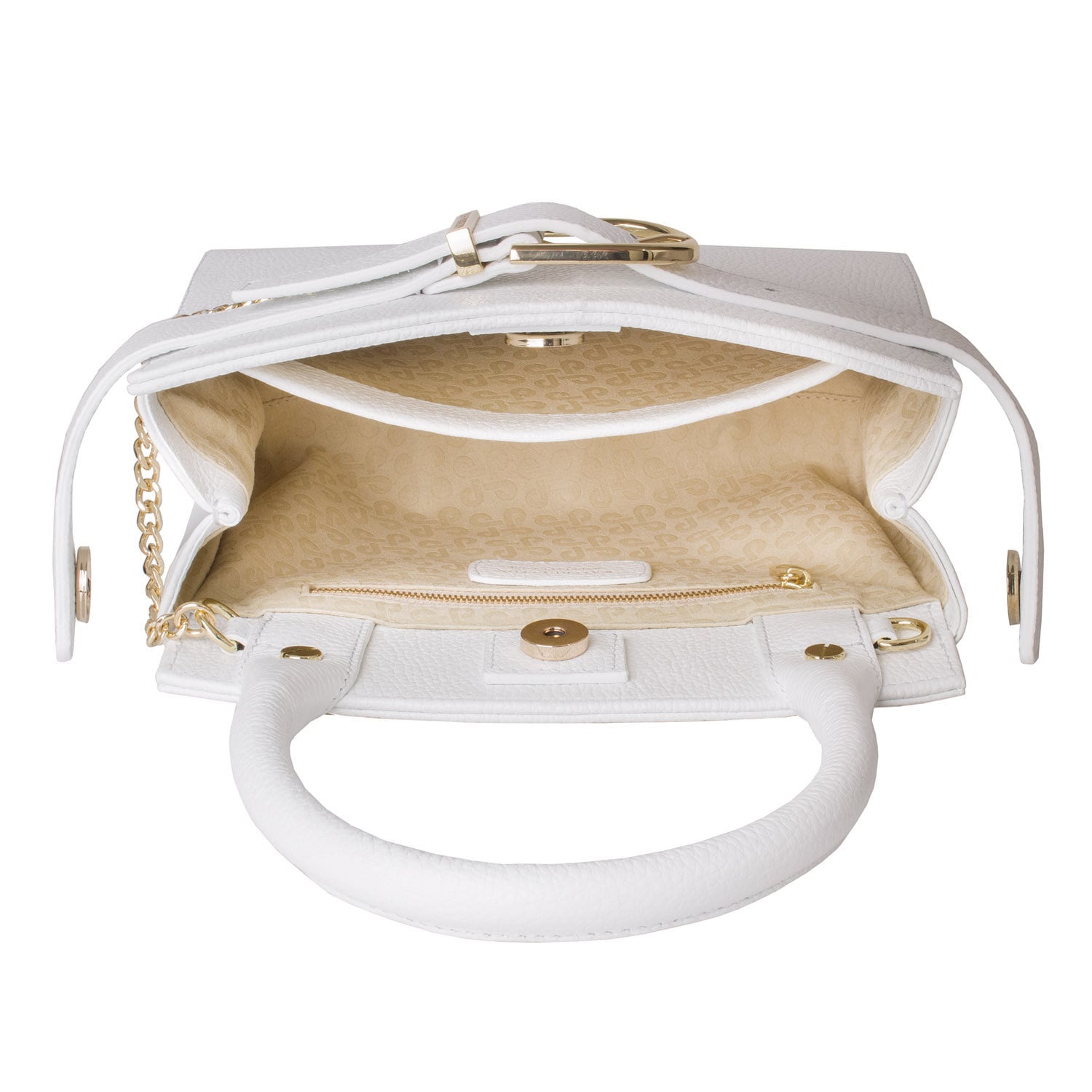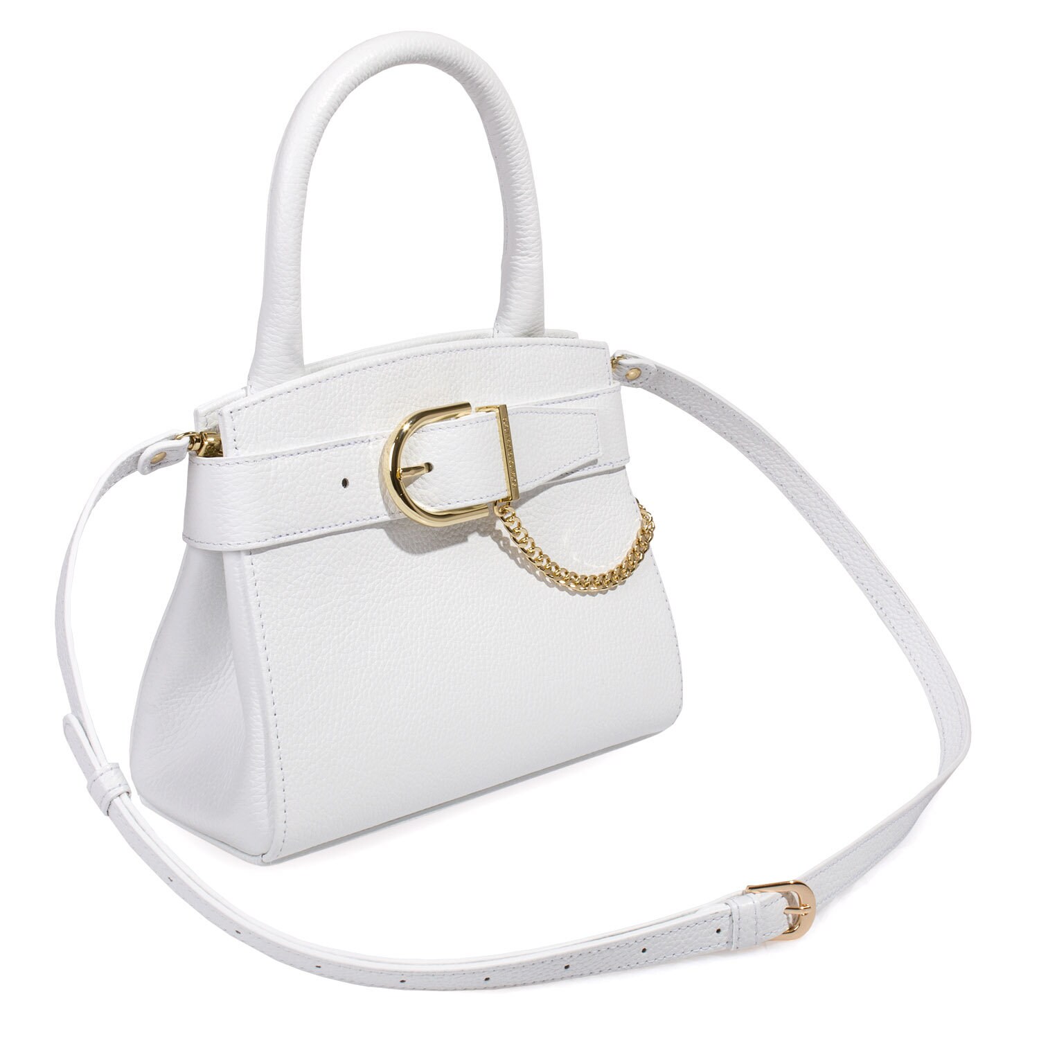 Women's leather bag made of genuine leather, hardware with galvanic coating and microfiber lining. The internal space of a bag is equipped with three compartments, one compartment and two side pockets, one with a zipper. §³loses with 3 magnet buttons. The bottom of the bag is protected with metal legs. There is a long handle that allows you to wear the bag on the shoulder. The kit also includes a storage bag.